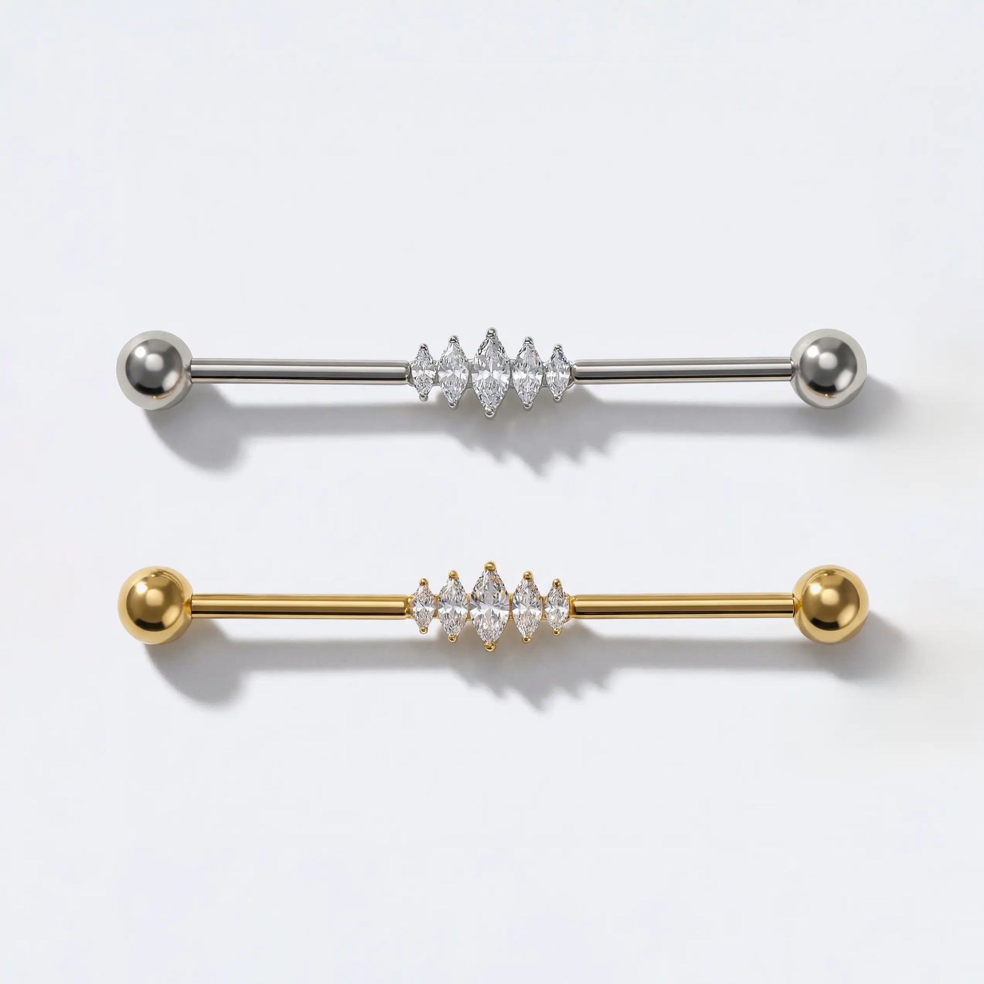 Designed with medical-grade stainless steel 316L for the secure and bar, a solid sterling silver S925 base, and adorned with premium moissanite crystals for exceptional brilliance.