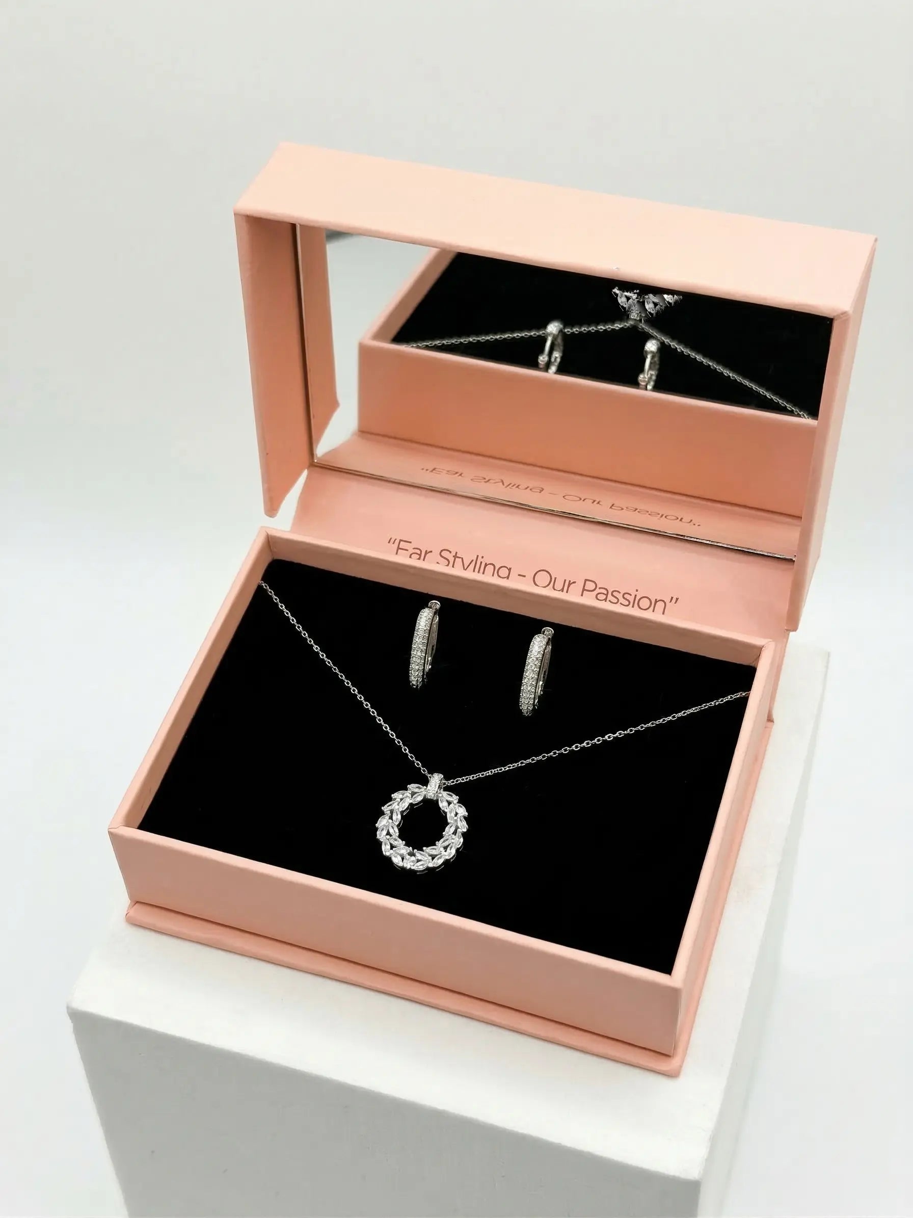 Each product features different materials, which you can check individually. However, most of our pieces are crafted from S925 sterling silver or stainless steel, and set with sparkling moissanite or zirconia crystals.